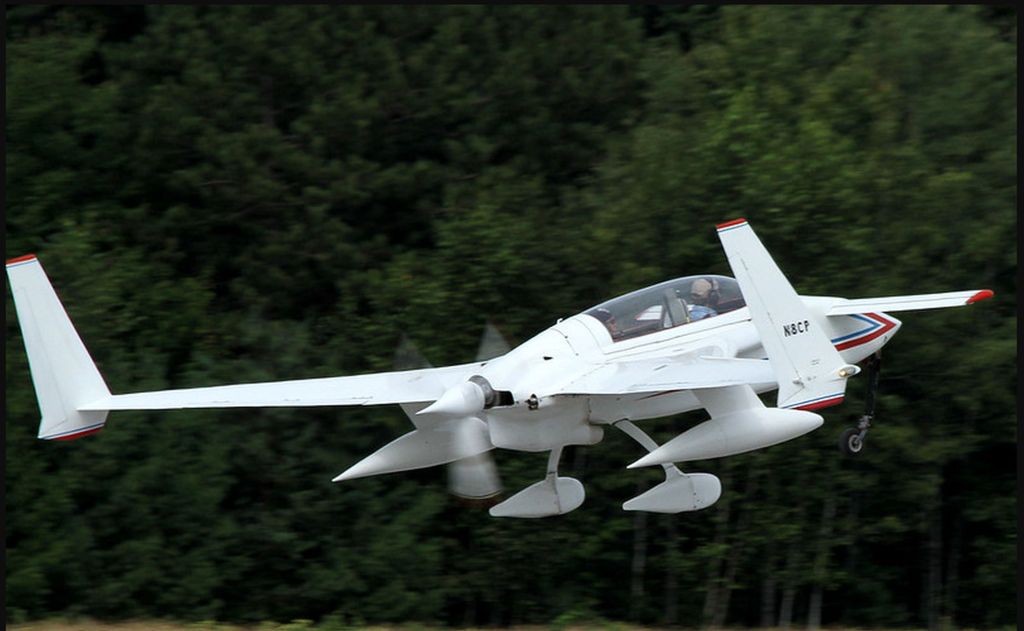 The Rutan Model 61 Long-EZ is a tandem 2-seater homebuilt aircraft designed by Burt Rutan. The Long-EZ has a canard layout, a swept wing with wingtip rudders, and a pusher engine and propeller. The tricycle landing gear has fixed main wheels with streamlined struts and a retractable nosewheel.